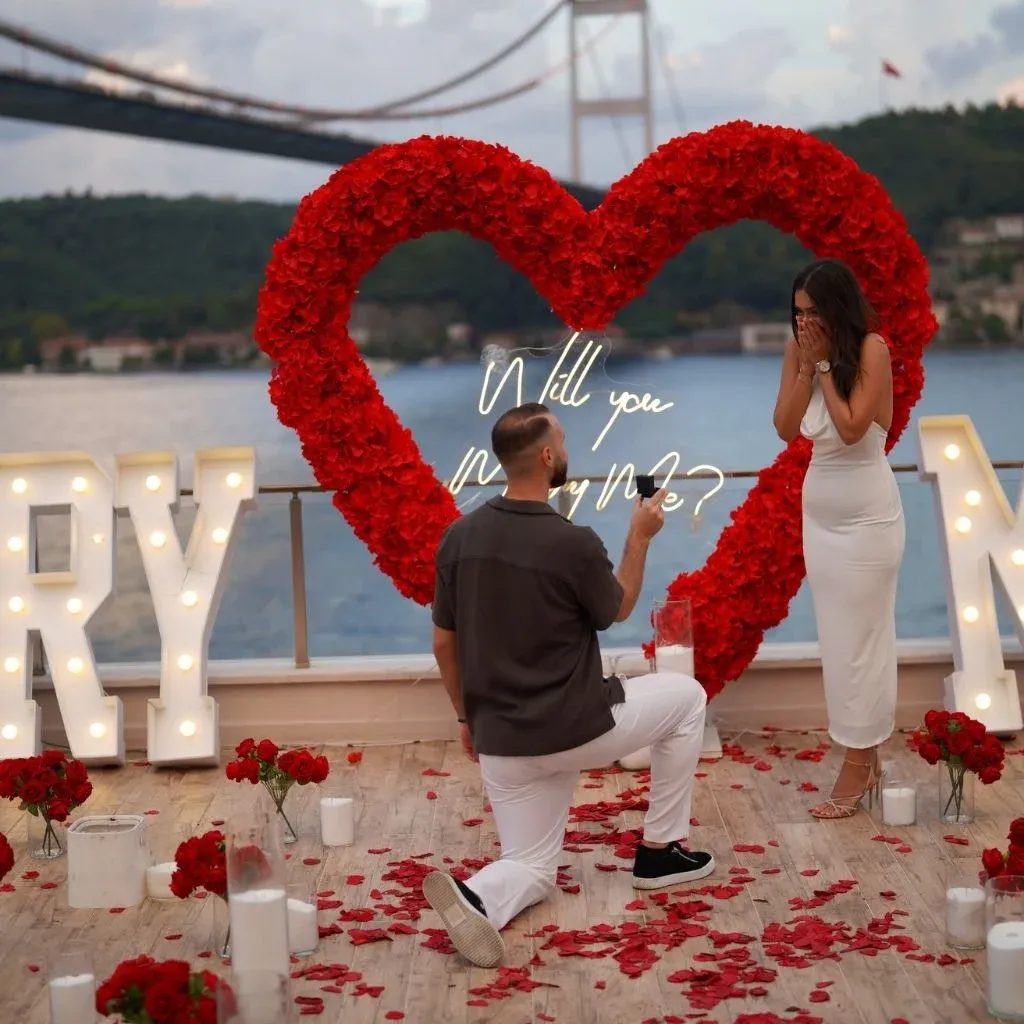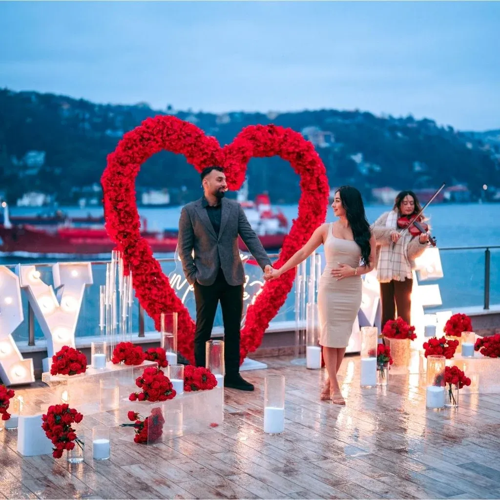 İstanbul’un büyüleyici atmosferi, aşkınızı taçlandırmak için en güzel dekordur. Boğaz manzaralı evlilik teklifi ile ona olan sevginizi gökyüzüne ve denizlere yazın. Biz, bu özel günün her saniyesinin kusursuz olması için buradayız.
