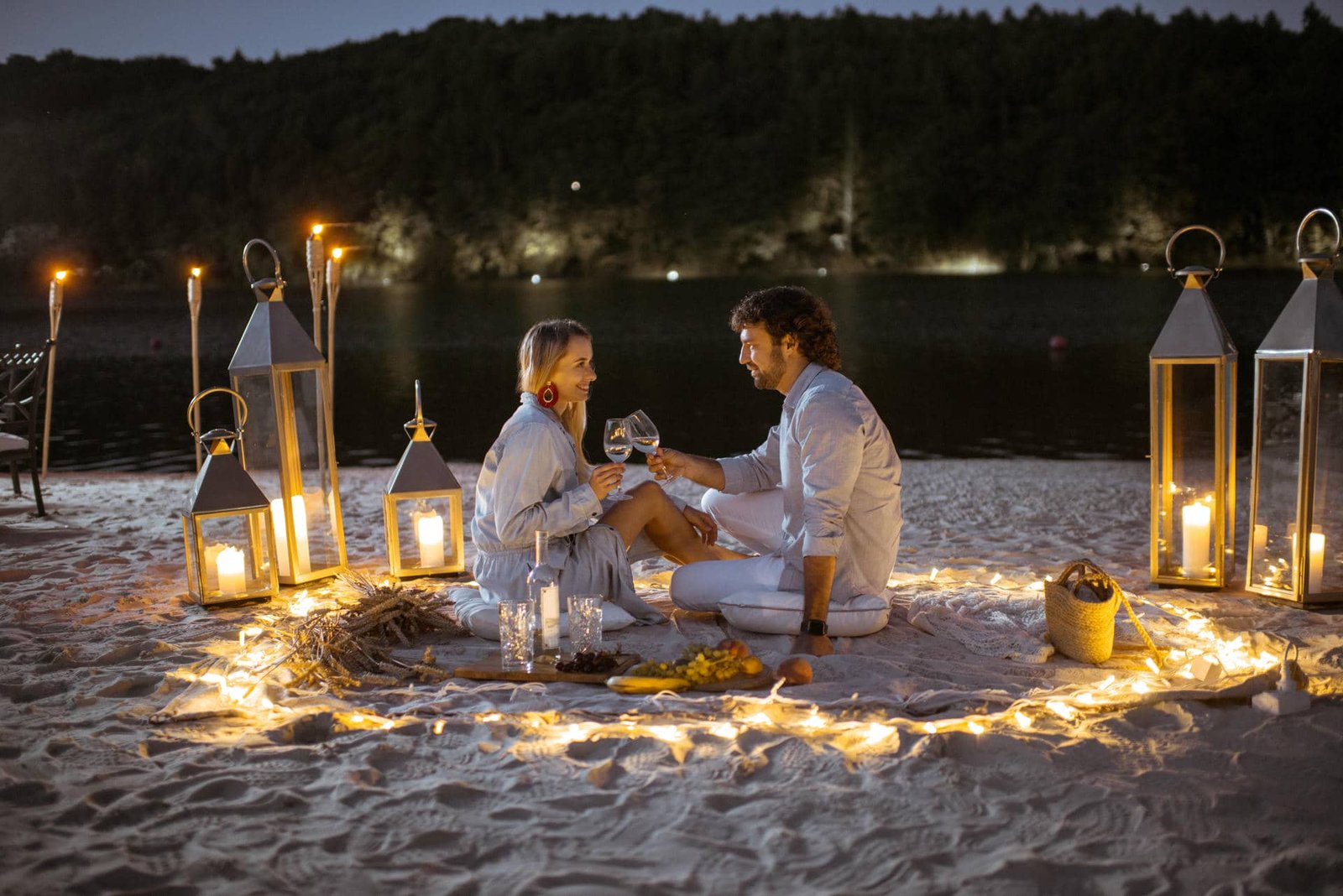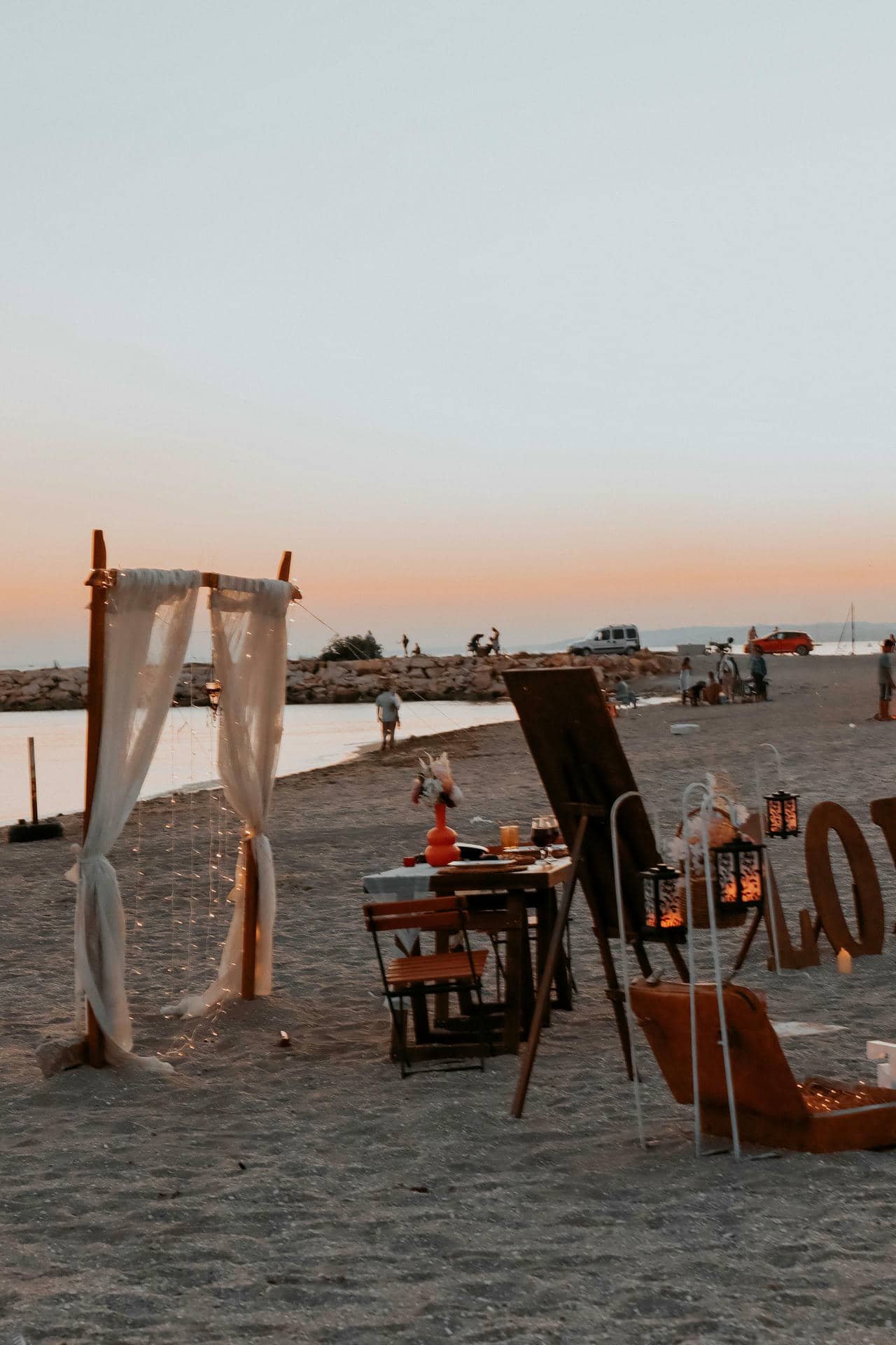 Hiçbir yapay dekor, bir gün batımı manzarasının yerini tutamaz. Ancak biz, bu doğal güzelliği şık objelerle destekleyerek size bir film karesi sunuyoruz. Beyaz tüllerle süslenmiş bir gazebo, kumların üzerine serilmiş bohem kilimler ve fenerlerle aydınlatılmış bir yol hayal edin.